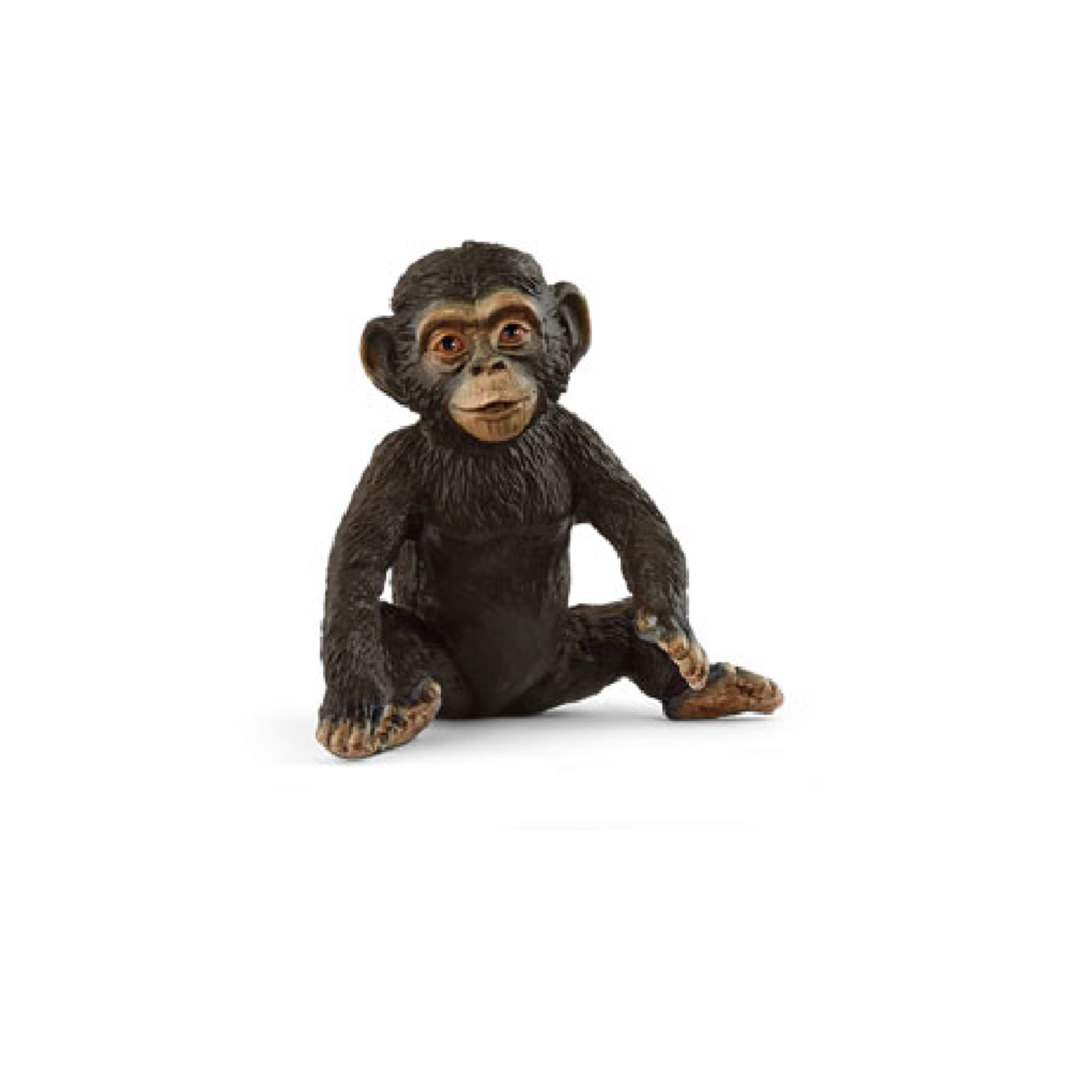 The little chimpanzee cub looks very cute. Its fur is already as thick as the grown-up chimps. Only its jaw is not quite as developed. It is probably still being suckled by its mum. Look how cute its large, black ears are!