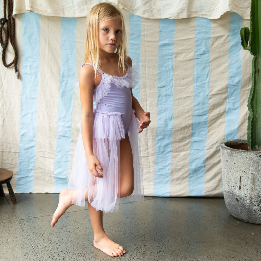 Dance, play and make believe in the stunning Eleanore. Perfect for ballet class, birthday parties and dress ups in this seasons’ exquisite new colour offerings. Already a fan favourite, with her soft tule and shimmering spandex she’s sure to spark more imaginations and dance parties this summer. Pull-up fit make her easy for independent dressers.