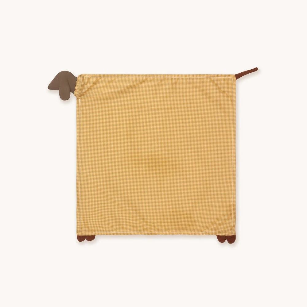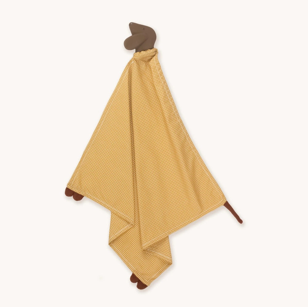 GOMMU DOU DOOU DOG is a comforting companion for newborns and little ones, featuring a smooth DOG head made of hevea and a soft body crafted from 100% cotton with a cheerful VICHY MUSTARD print. This charming dou dou is perfect for nap times, providing a sense of security and warmth for your child. Whether at home or on-the-go, the GOMMU DOU DOU DOG is designed to accompany your little ones on their adventures, making it the ideal cuddle buddy to help them feel safe and cherished.