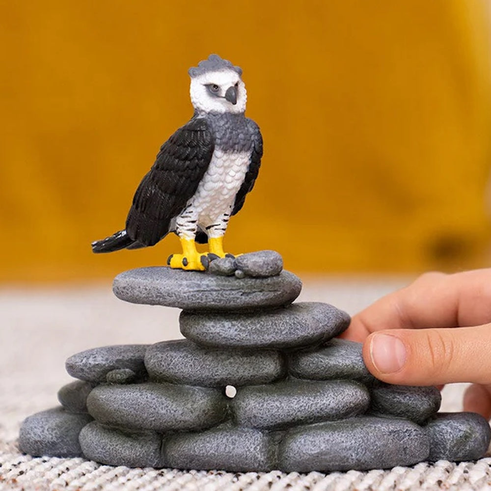 The Harpy looks impressive with its dark plumage and the striped feathers on its legs. But watch out: Its feathery crest is sticking back which should be a warning! It means that the large bird of prey is on high alert. What do you think it has spotted? The Harpy may be about to set off on a hunt. With its powerful claws it can even kill monkeys and carry them away! But it also lets friends carry it around and will even feed from your hand!