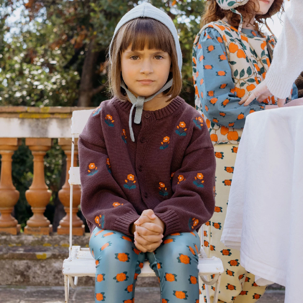 This embroidered flowers cardigan, crafted from a soft cotton and wool blend, adds a playful charm to any little wardrobe. Featuring a button-up front and cozy feel, it’s comfortable and stylish—perfect for layering on cooler days while bringing personality to every outfit.