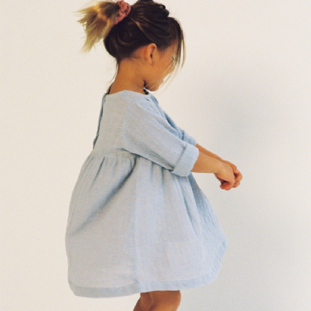 Crafted from soft, breathable cotton gauze, the Koa Dress in Flamingo is a timeless favourite for all occasions. Featuring a high waistline, rolled sleeves, and a button-back closure, this dress effortlessly balances comfort and style. Perfect to dress up or down, it’s designed for everyday wear and special moments alike.