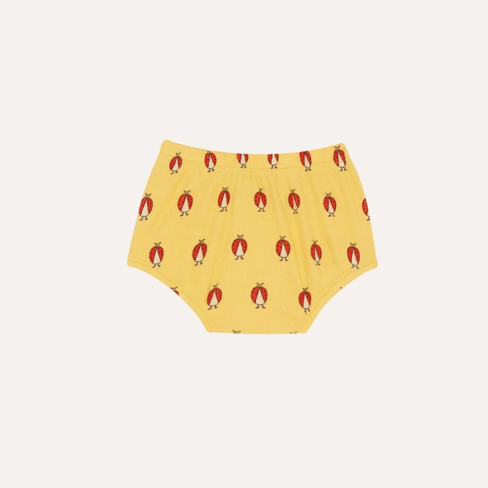 With elastic in waistband and made with a soft cotton quality, this blue bloomer features an allover print of small ladybugs. Ideal for the summer warmer days.