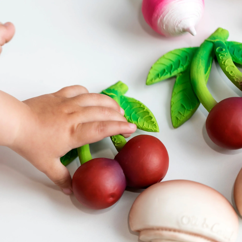 Mery the Cherry is a fruit-shaped baby teether that will stimulate babies’ senses while soothing little gums. Its size is perfect for kids to hold on and its realistic textures will help develop kids’ sense of touch. Introduce kids into a healthy lifestyle from a young age! It will become babies and kids’ favorite teether, bath toy and sensory play toy.