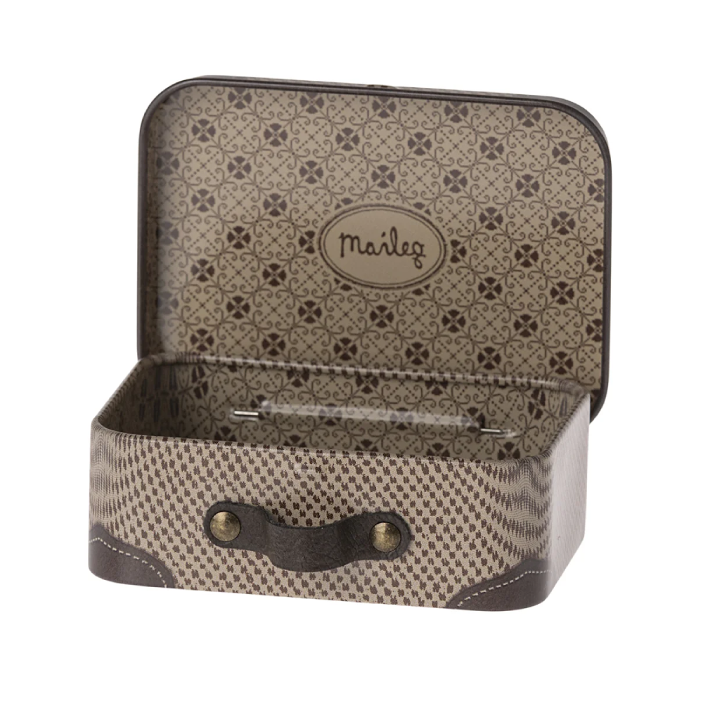 A toy metal suitcase with a beautiful print. This suitcase can be used for any occasion: small gifts, storage of small items or for mice and micro bunnies to bring their belongings on the go.
