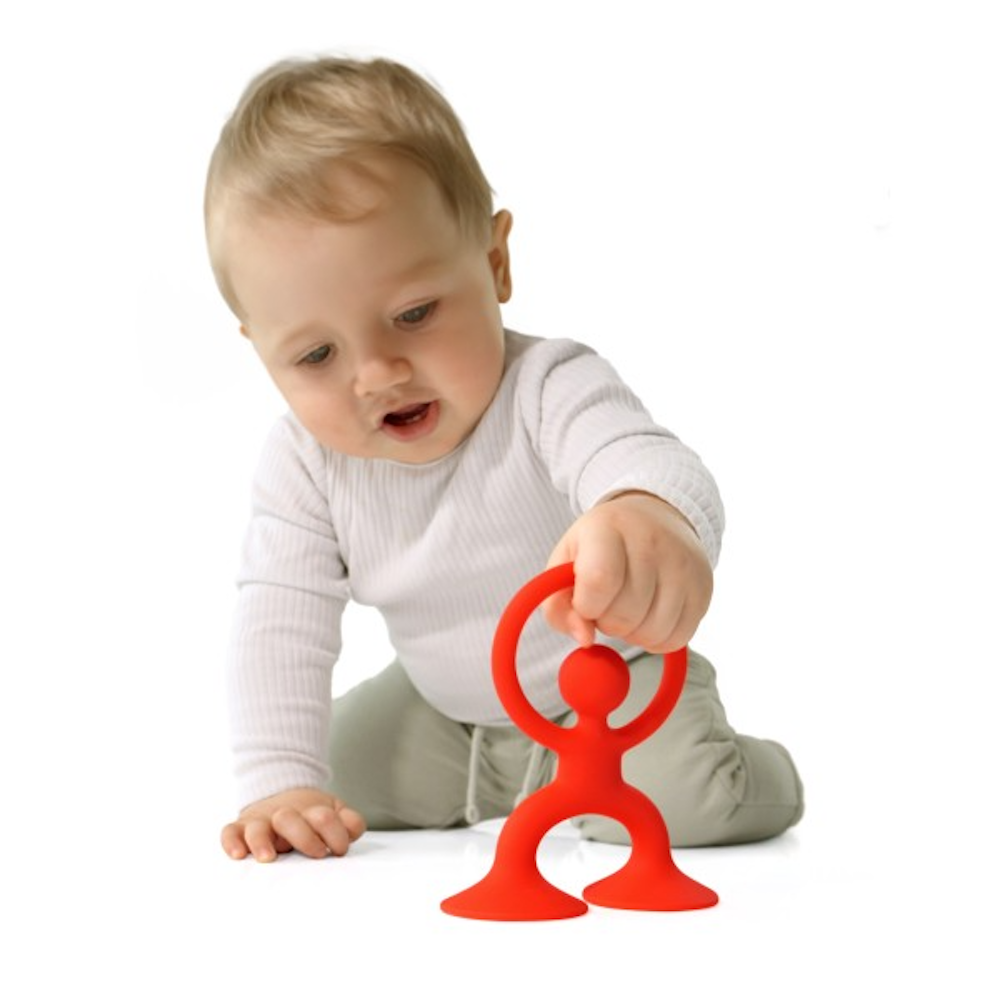 A teething and grasping toy with character! The large suction cup feet hold Noogi firmly in place while you pull, stretch, and twist the figure, enjoying