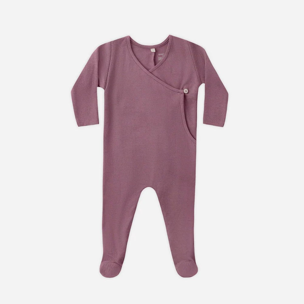 Our Pointelle Wrap Footie keeps your little one cozy and comfortable, with a snap closure on the inside and a button closure on the outside for easy changing.