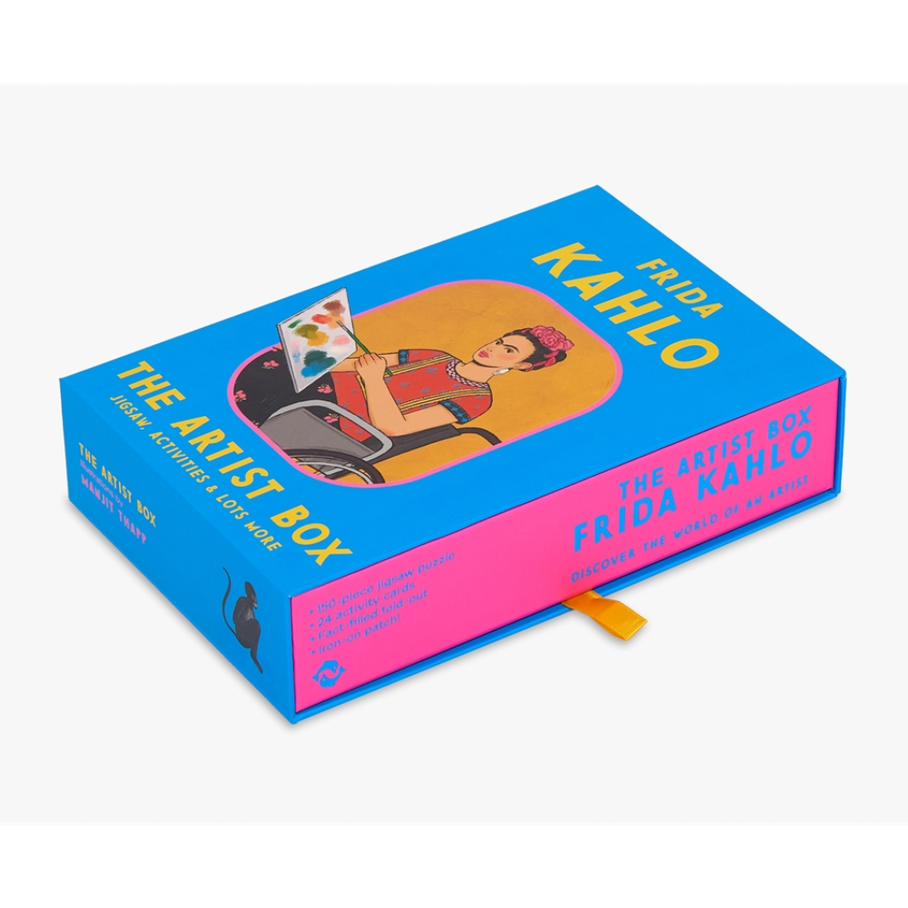 Explore Frida Kahlo’s art, life and home in this interactive artist’s box, featuring twenty-four activity cards, a 150-piece jigsaw, a concertina fold-out and an iron-on patch.