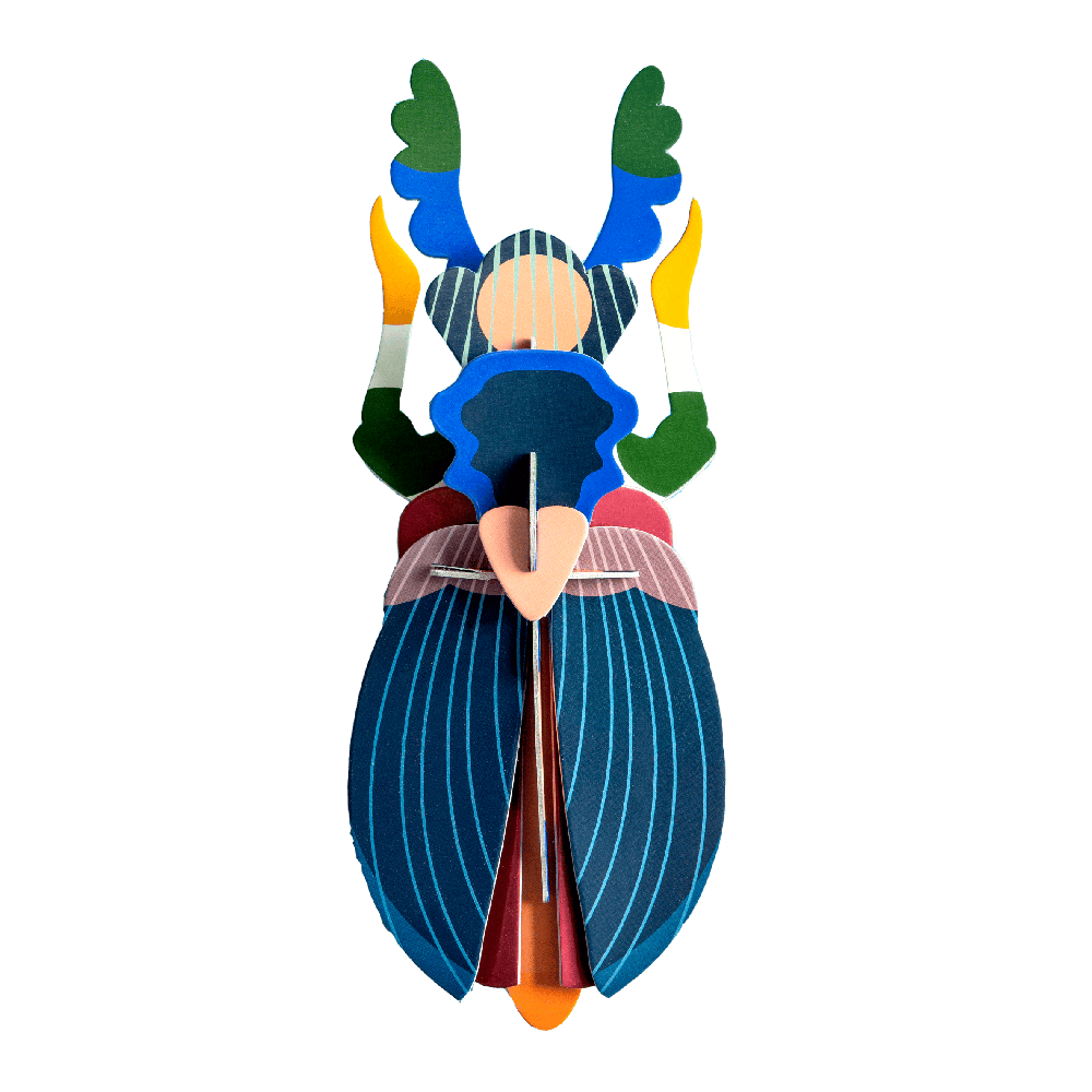 In real animal life, they inconspicuously scuttle about under leaves and on branches, but these flamboyant and colourful beetles – from every corner of the world – look as if they have just stepped off the catwalk. Give them a place among your artistic treasures, hang them on the wall, let them crawl around on your table and create your own insect story.