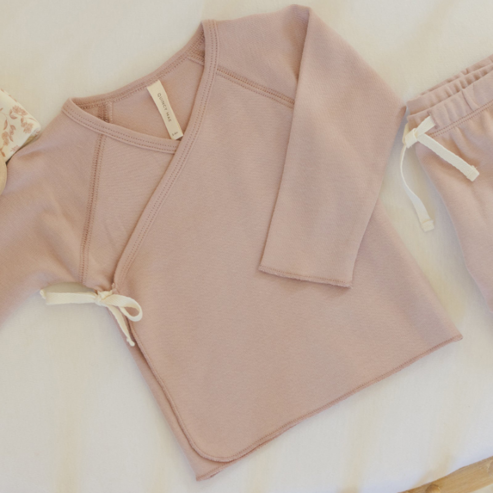 Wrap Top + Footed Pant Set Rose